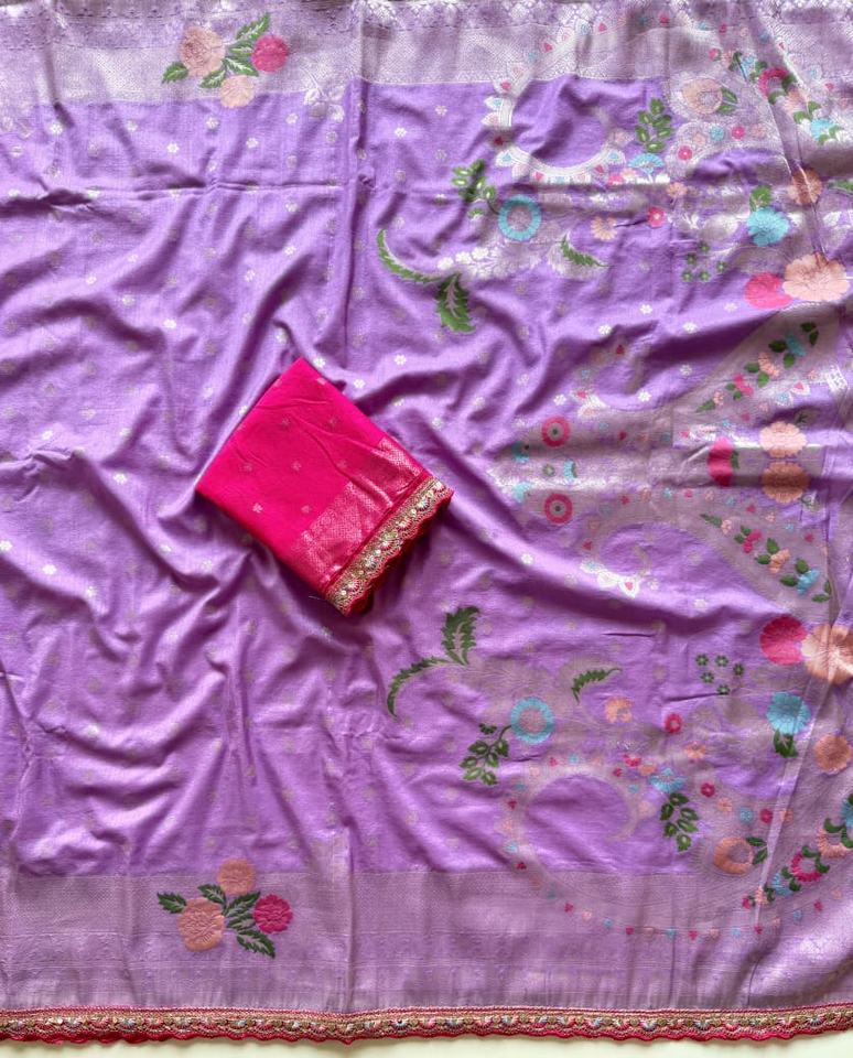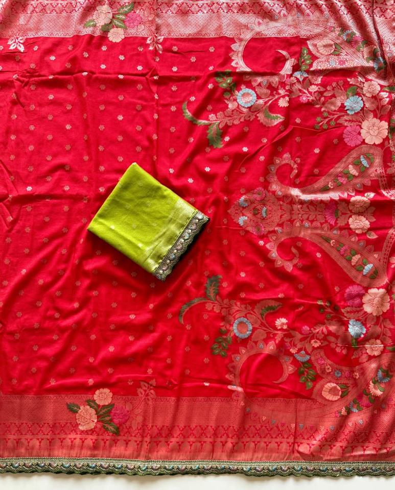 Sari pour femme en Georgette Khadi pur, coupe courte, avec bordure Butta et pallu ouvert riche, fabriqué en Inde, en stock