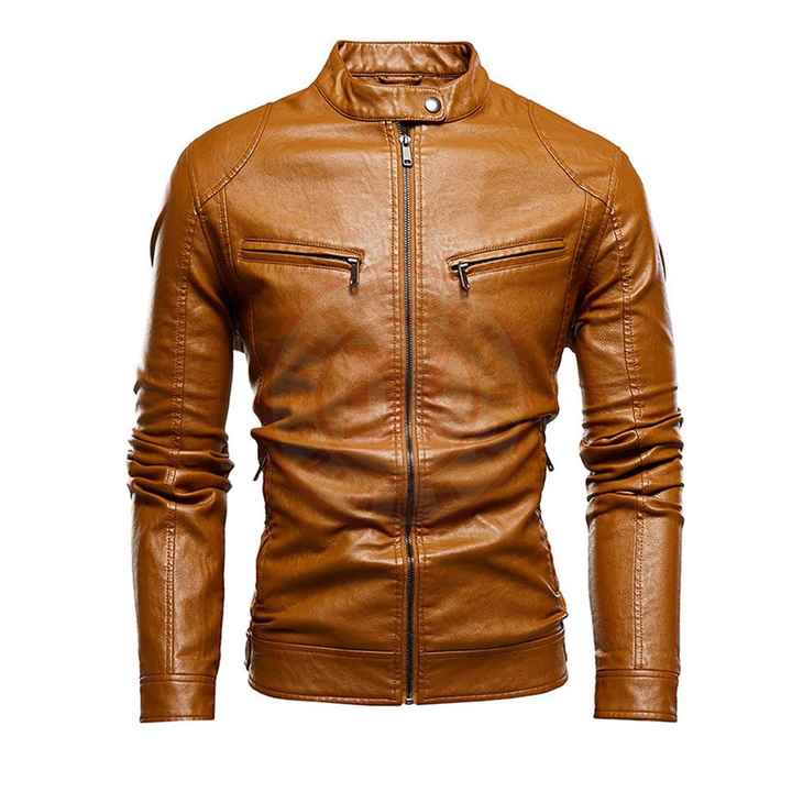 Veste en cuir véritable pour homme, nouveau style tendance, boutons recouverts, col montant, logo frontal, chauffante, séchage rapide, respirante, hiver