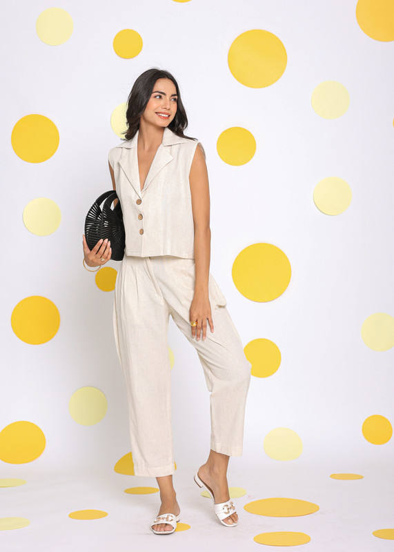 Product Name:Linen White Relaxed Co-Ord Set