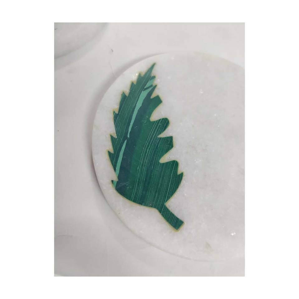 Ensemble de sous-verres à thé en marbre pur Makrana poli vert malachite pierre feuille conception incrustation pour la décoration de la maison produit d'artisanat en pierre