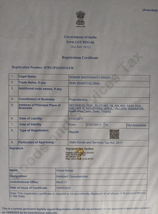 Shiv Shakti GlobalMarque nom