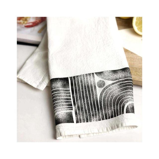 Qualité pure blanc et noir motif géométrique brodé 100% coton séchage rapide évacuation de l'humidité élégant Golf thé serviettes ensembles
