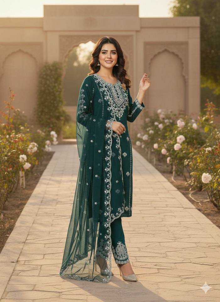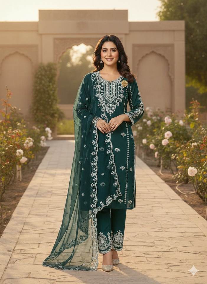 Ensemble Salwar Kameez en Soie Pure Romaine avec Broderie Lourde, Coupe Droite, Tailles M à XXL, Bordure Tendance, et Dupatta – Collection SIE