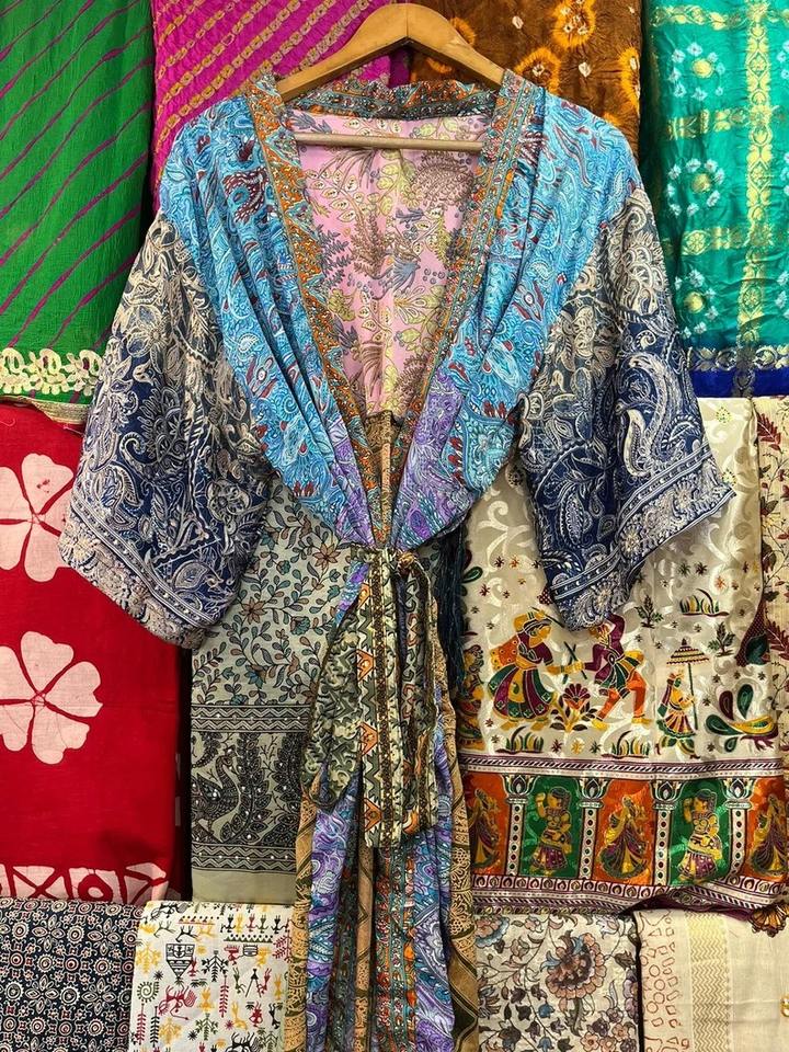 Robe Kimono en soie pure Taille libre Robe de chambre d'été de luxe Patchwork Design Honeymoon Lounge Wear pour le cadeau de fête des mères