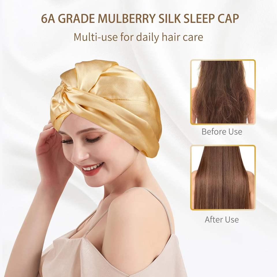 Turban de sommeil en soie pure, coloré, véritable satin, double couche, accessoires de sommeil, bonnet de sommeil en soie avec logo