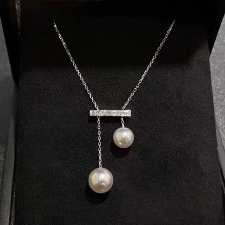 Pure Silver Balance Beam Freshwater Pearl Necklace with Strong Light Adjustable Pull-Out Design Multiple Round Shape