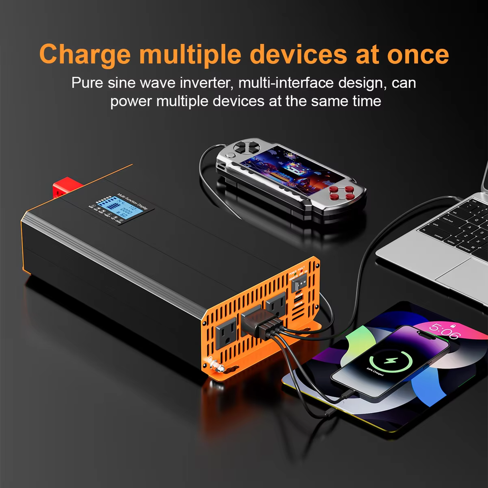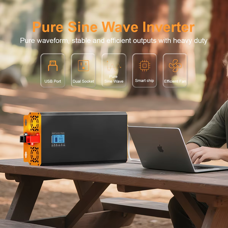 Convertisseur d'énergie solaire à onde sinusoïdale pure 1000W 2000W 3000W 4000W 12V 24V CC vers 110V 60HZ CA, onduleur monophasé