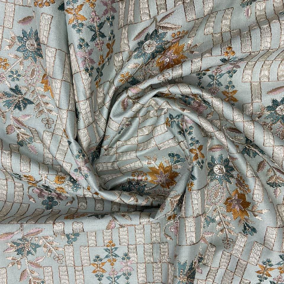 Pure Smart Silk Embroidery Fabric Breathable with Multiple Thread Work for Kothi Kurta Sherwani and Other Embroidered Clothing
