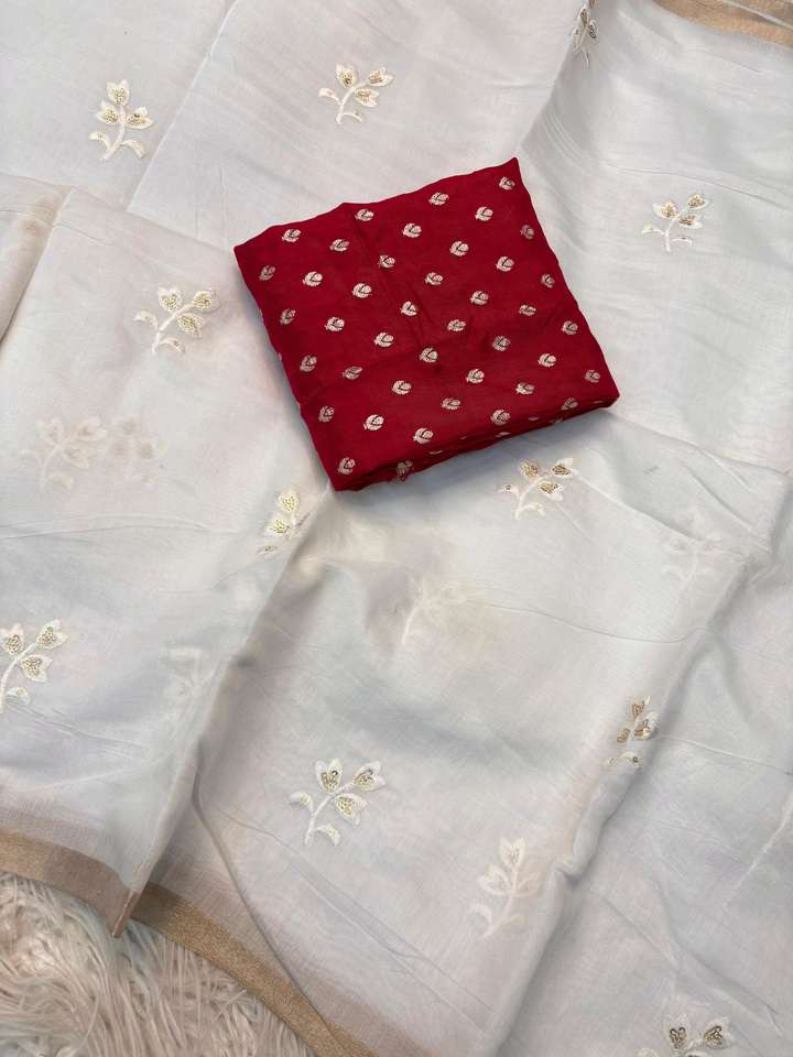 Sari en coton pur Chandari doux avec bordure en zari, design jacquard contrasté pur