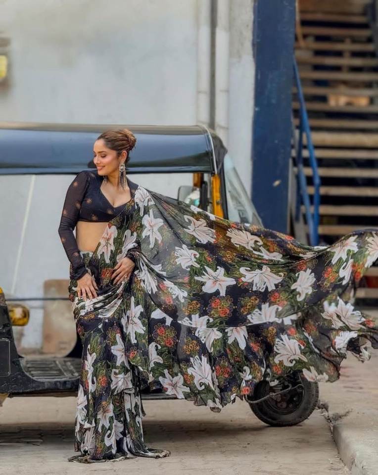 Pure Soft Georgette Digital Print Saree Modern Indian Party Wear pour les saisons d'hiver