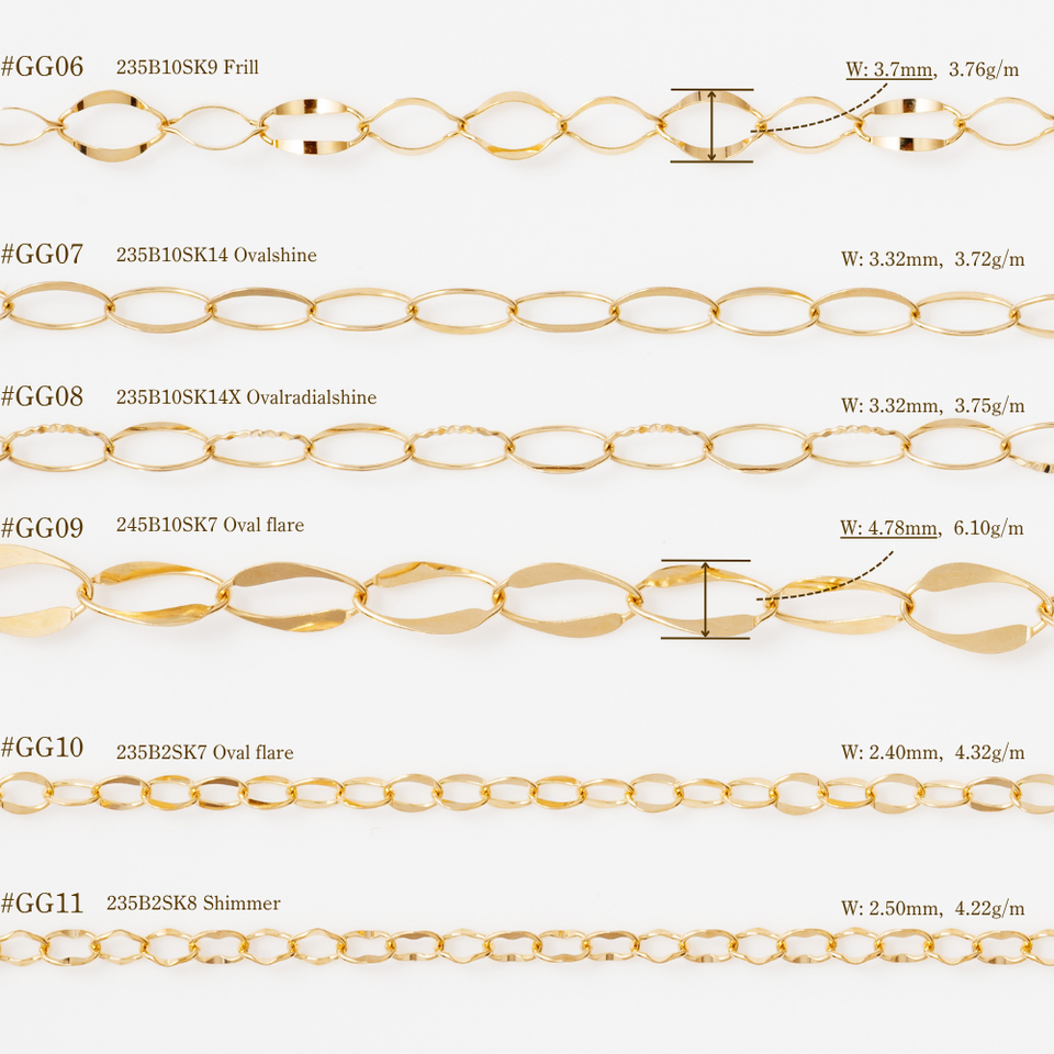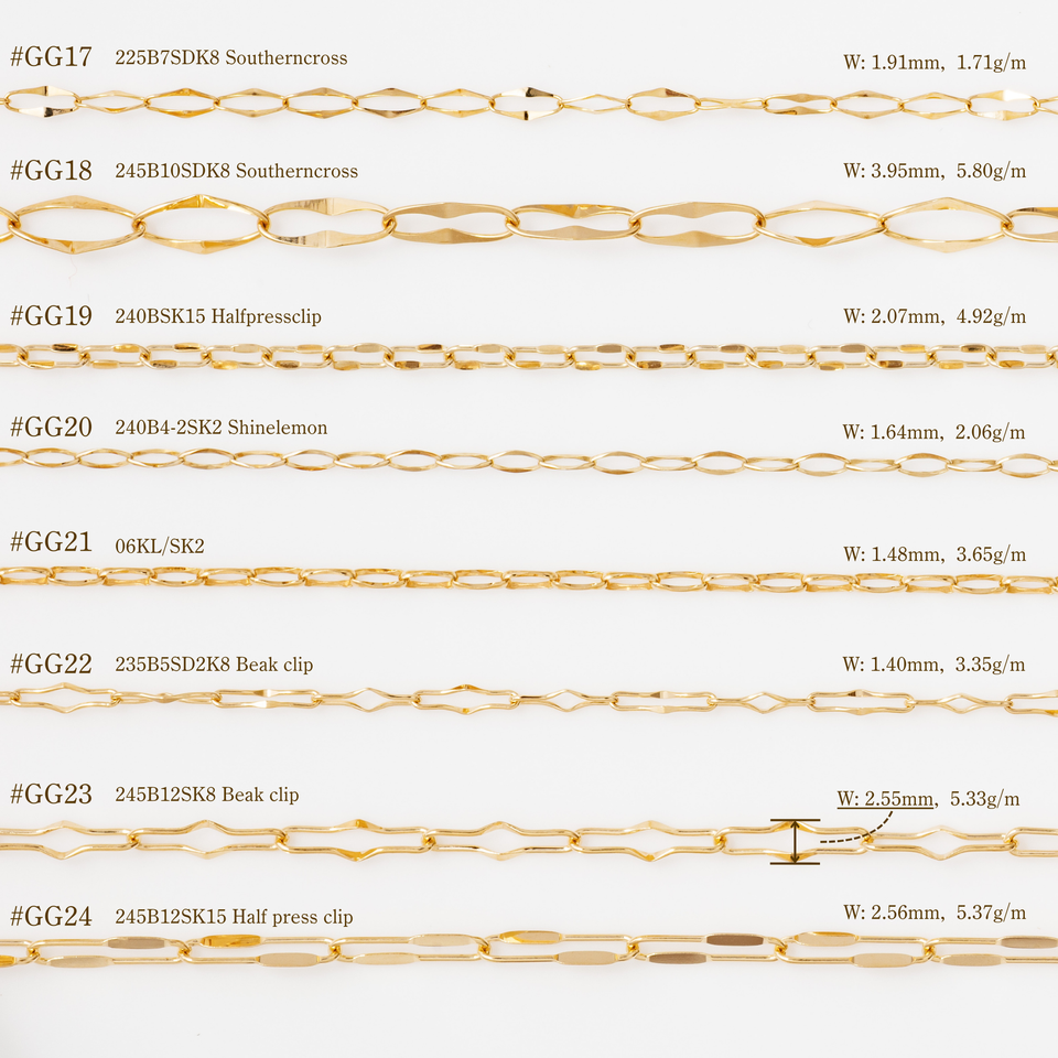 K18YG/RG/WG, K14YG/RG/WG, K10YG/RG/WG, Pt850/950