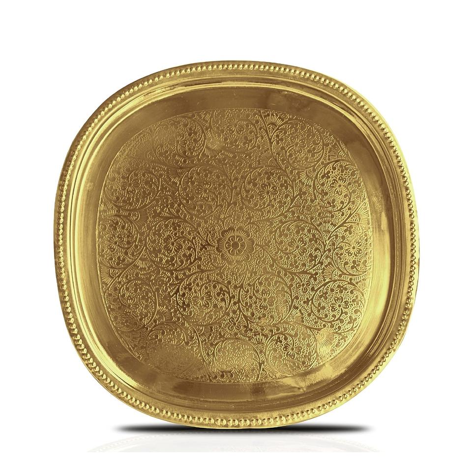 Plateau de service traditionnel en laiton fait à la main Pure Source India pour la prière