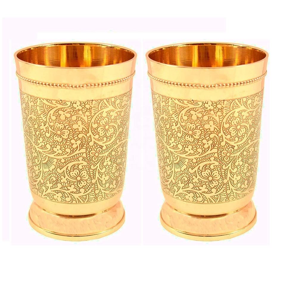 Ensemble de verres à jus d'eau décoratifs à motif floral oxydé en acier inoxydable pur pour cadeau de retour à la maison Ensemble de verres de style traditionnel