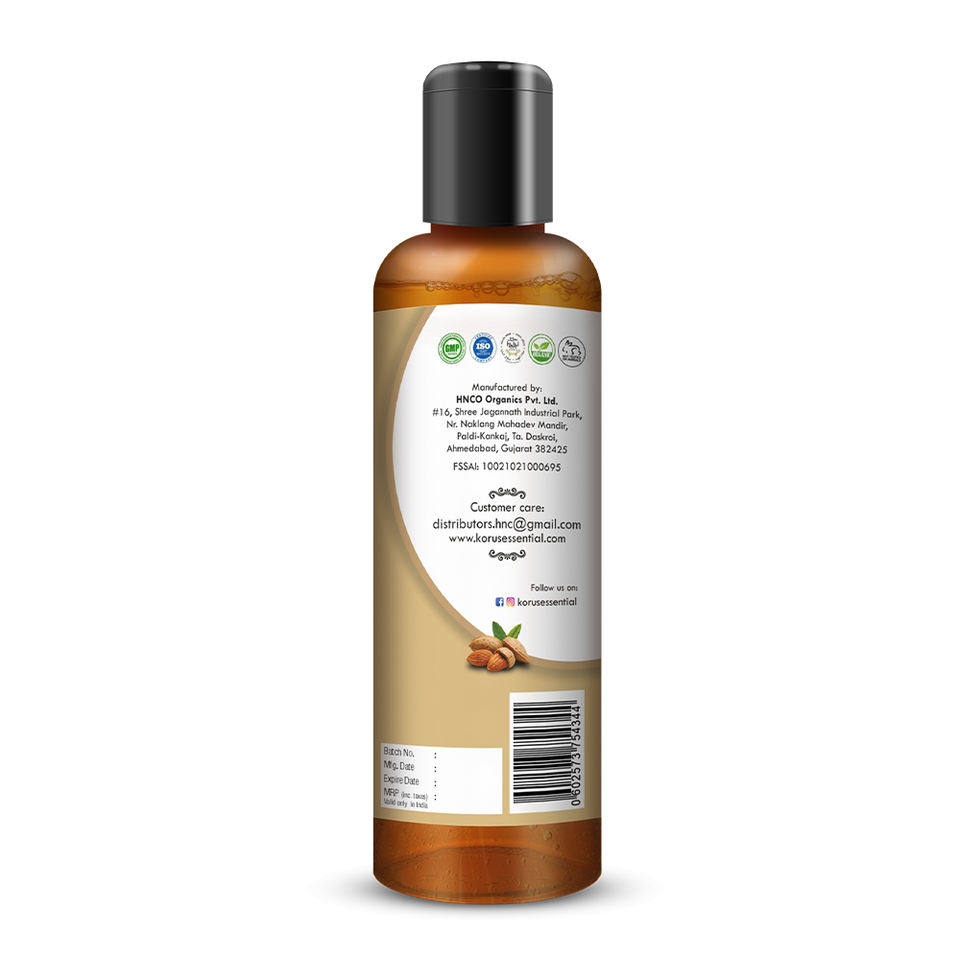 Huile d'amande douce pure pressée à froid, huile naturelle pour la peau, les cheveux, le massage et l'utilisation quotidienne pour le bien-être