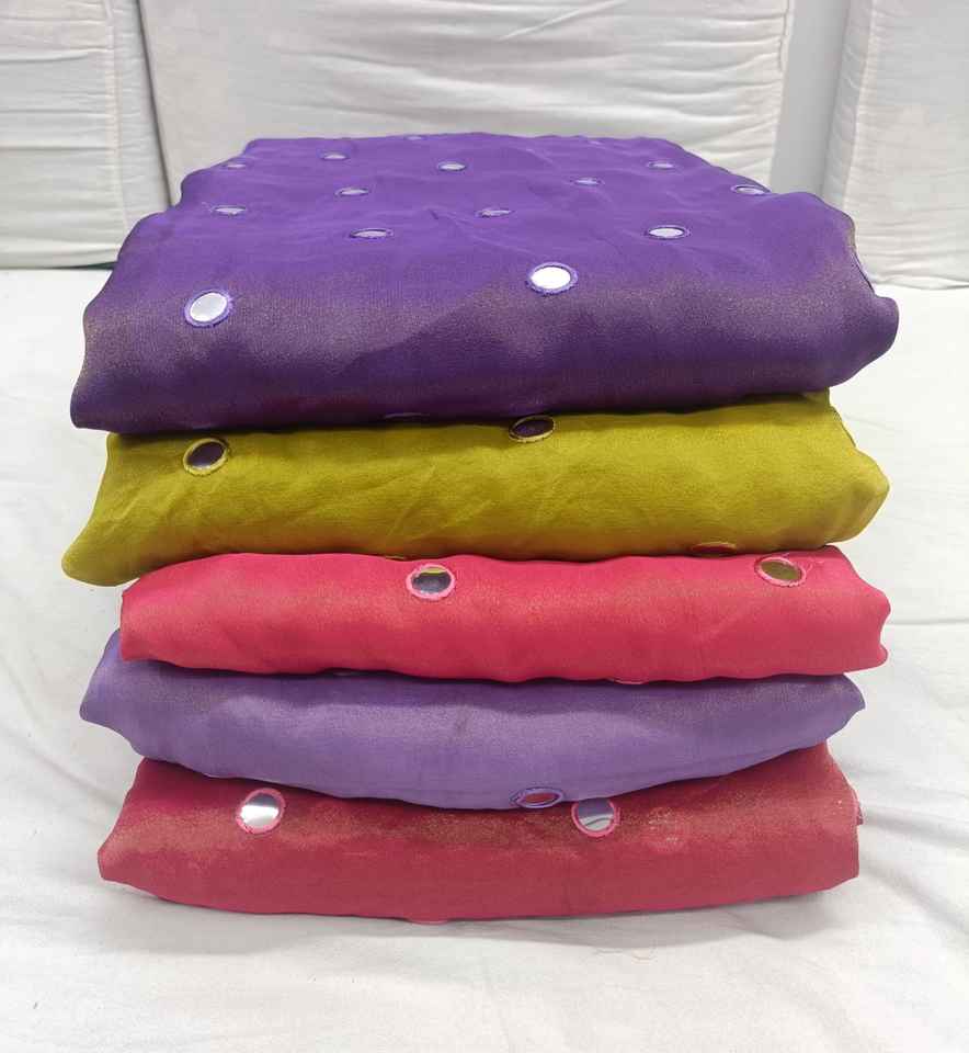 Tissu en pure soie de qualité supérieure avec broderie miroir, doté d'une broderie miroir exquise réalisée à la main