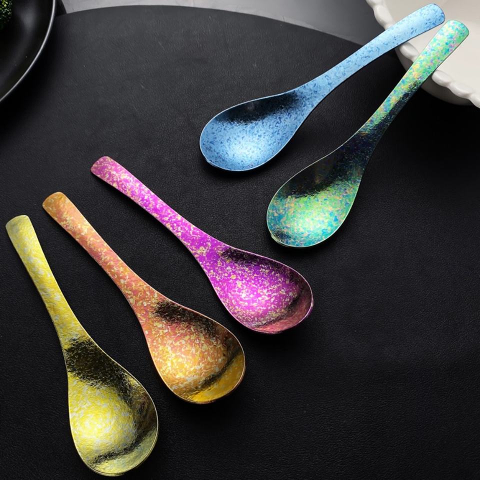 Cuillère en titane pur pour le camping en plein air, antibactérienne, résistante aux hautes températures, motif fleur de glace colorée, tendance et facile à nettoyer, personnalisable
