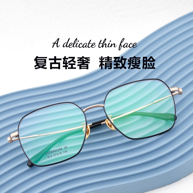 Montures de lunettes rectangulaires en titane pur, anti-lumière bleue, monture complète, unisexe, verres en résine, fabriqué à Shenzhen, référence 913