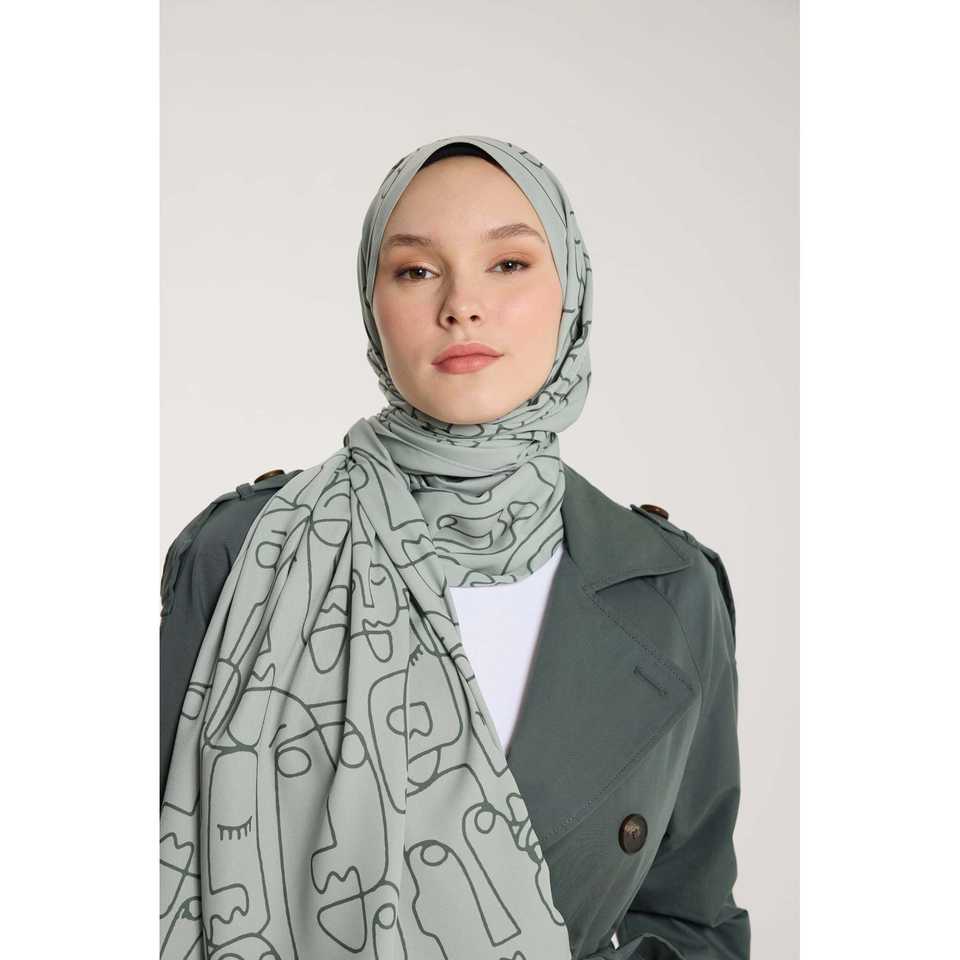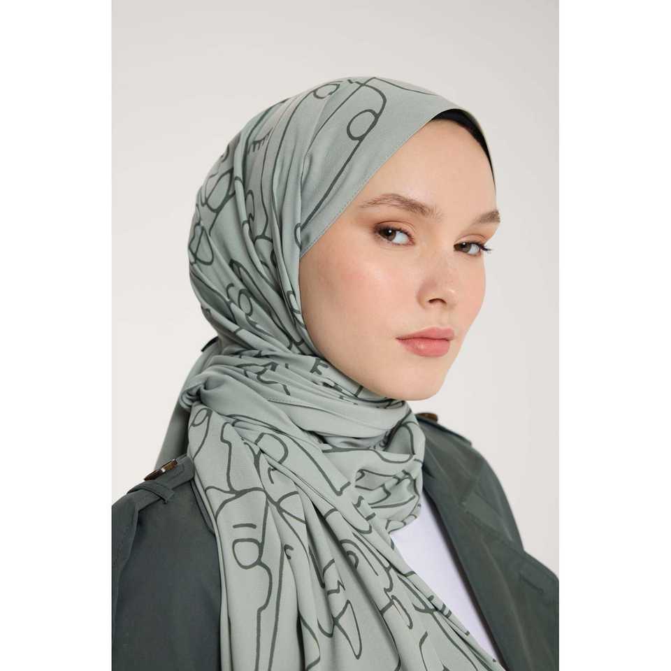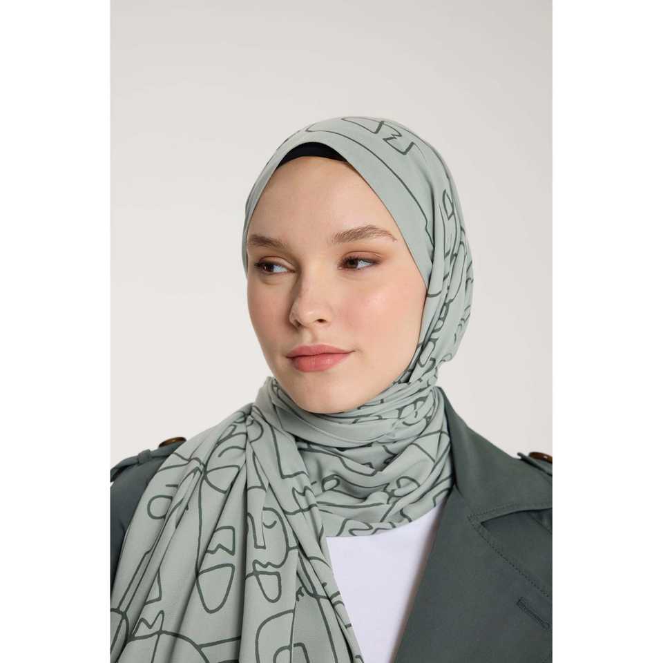 Pure Tone Luxury Satin Silk Scarf Designer Custom Pattern Light Green with Dark Accents Long Length for Spring Summer Seasons