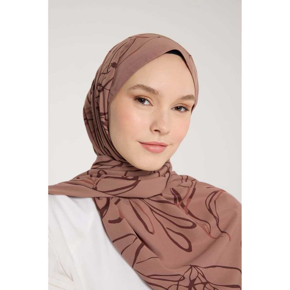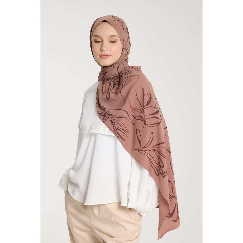Écharpe en soie Pure Tone avec motif de feuilles couleur café au lait - Accessoire de qualité supérieure