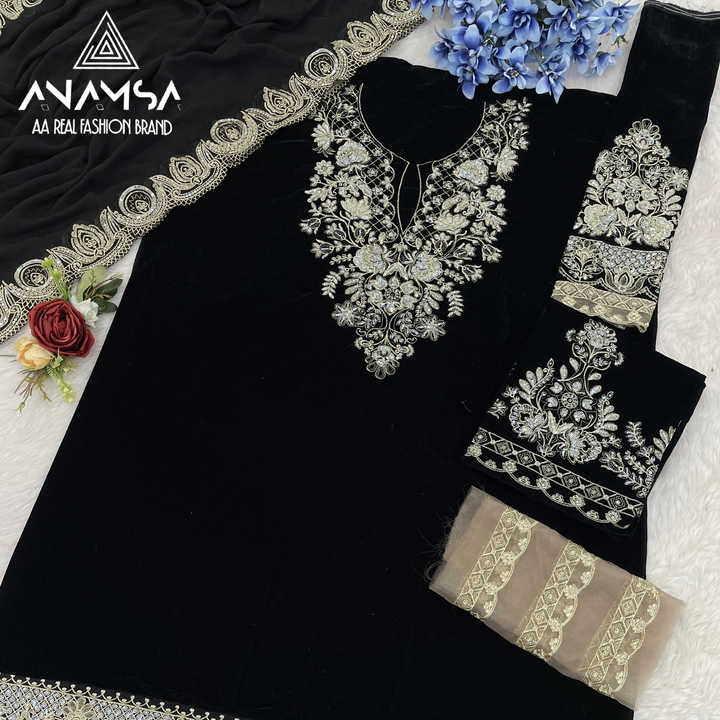 Pure Velvet Winter Shalwar Kameez avec broderie et paillettes, complété avec une Georgette fantaisie Dupatta.