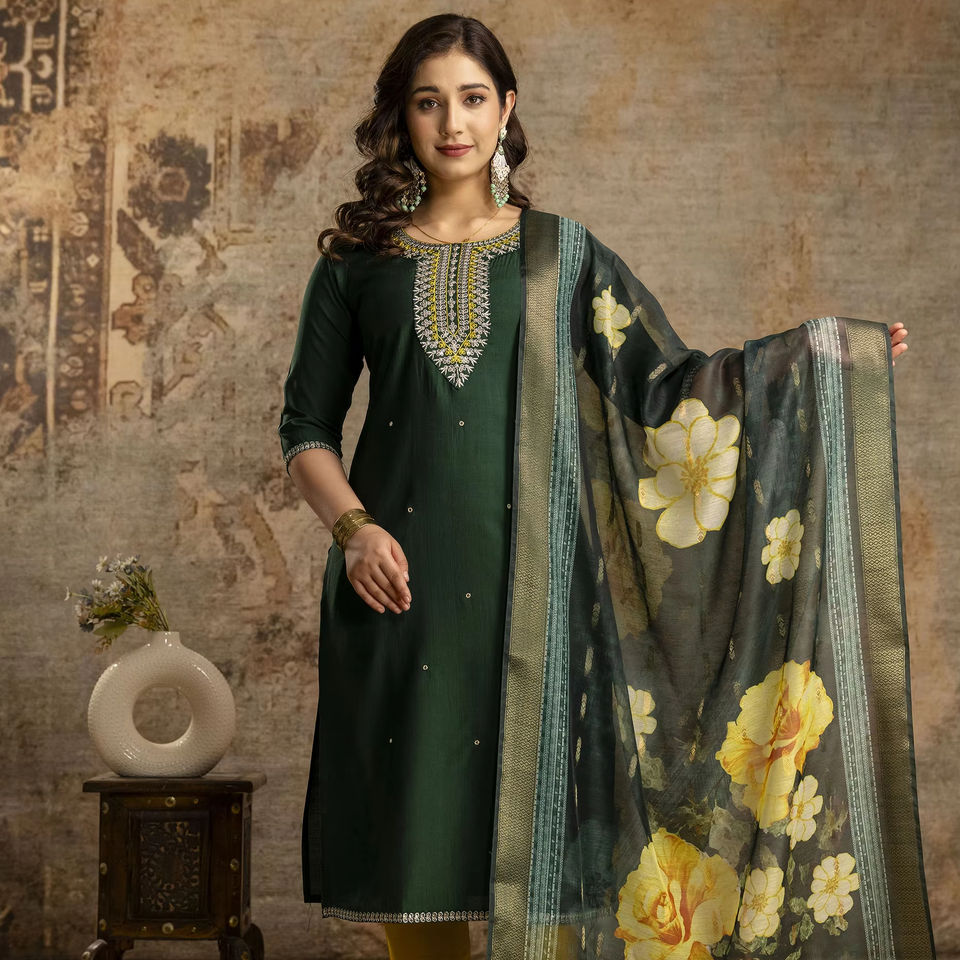 Pure Viscos Russian Dola Silk Women Bottom Kurta Set with Chanderi Jacquard Sequence Dupatta Casual Dress For Women