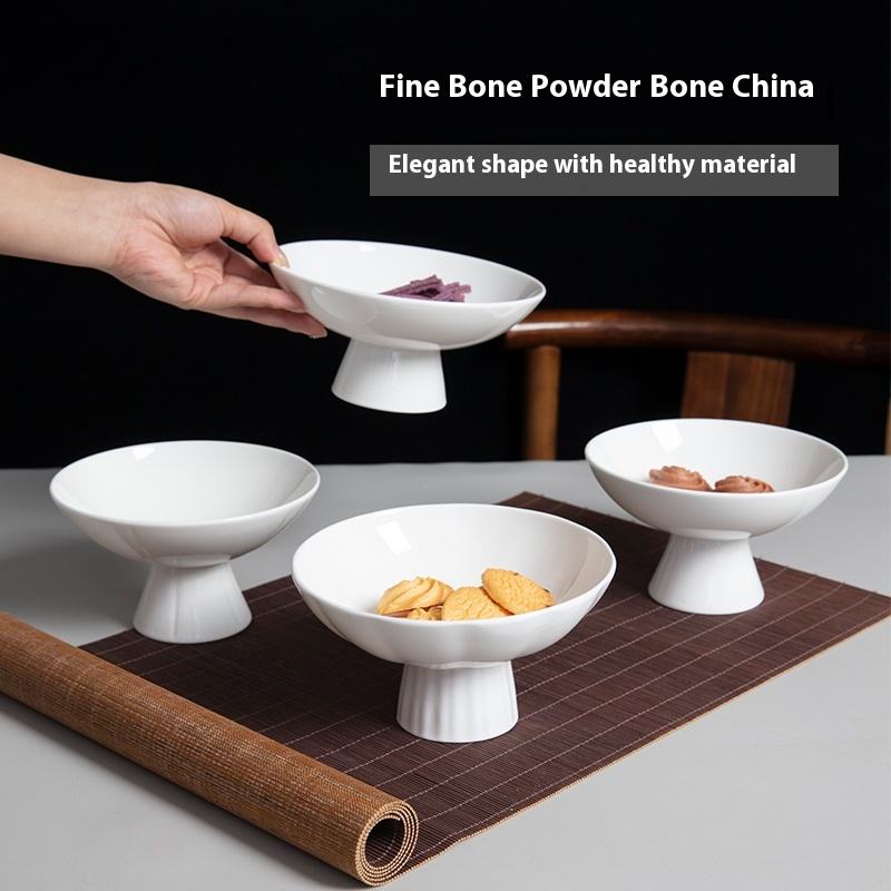 Assiette à dîner en porcelaine d'os blanc pur Style chinois rétro conception de pied haut cuisinière encerclée assiette en céramique pour rafraîchissements séchés