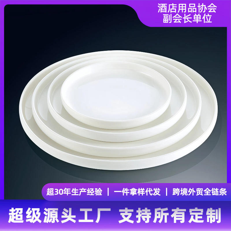 Assiette à steak en céramique blanche pure, ronde, à rebord bas, en porcelaine, pour hôtel et réceptions