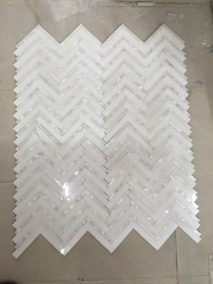 Nom du produit:Pur marbre Blanc mix shell mosaïque chevron tuiles