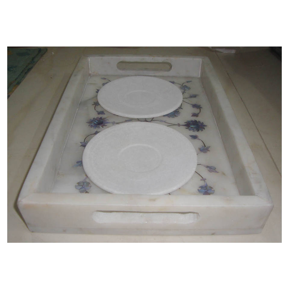 Peu Cher Beau Marbre Blanc Bleu Nacre Incrustation De Pierre Plateau de Travail Avec Coquille VADROUILLE Soucoupe Plaque Ensemble