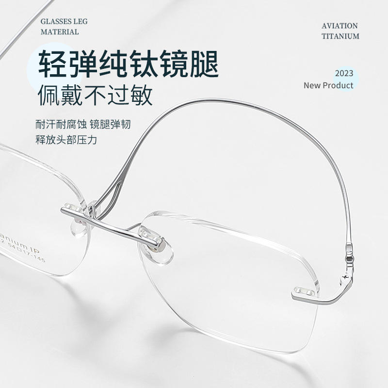 Lunettes sans monture Pure White Moonlight pour femmes 68022, monture rectangulaire légère en titane