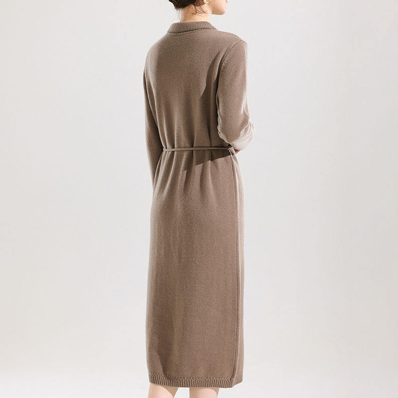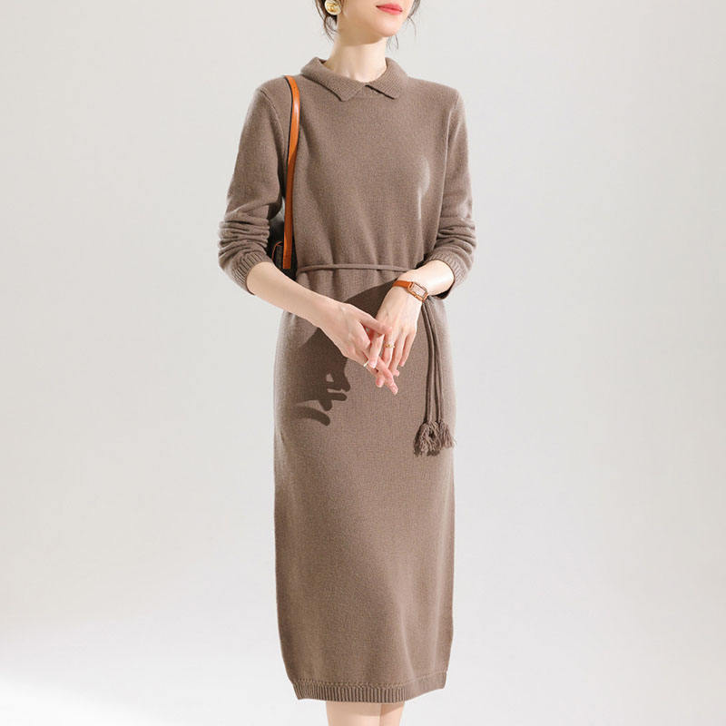 Nom du produit:Robe à revers en tricot mi-long col polo en laine pure robe pull femme