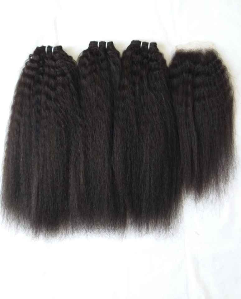 Paquet de trame de longueur et de volume instantanés d'extensions de cheveux humains indiens purs et non transformés avec des styles de vague et de boucle
