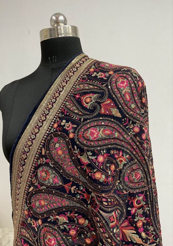 Renard pur georgette fantaisie dupatta broderie travail dupatta sherwani dupatta