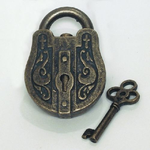 Serrure et clé en fer pur conçues pour la décoration de meubles vintage ou d'intérieurs de ferme haut de gamme