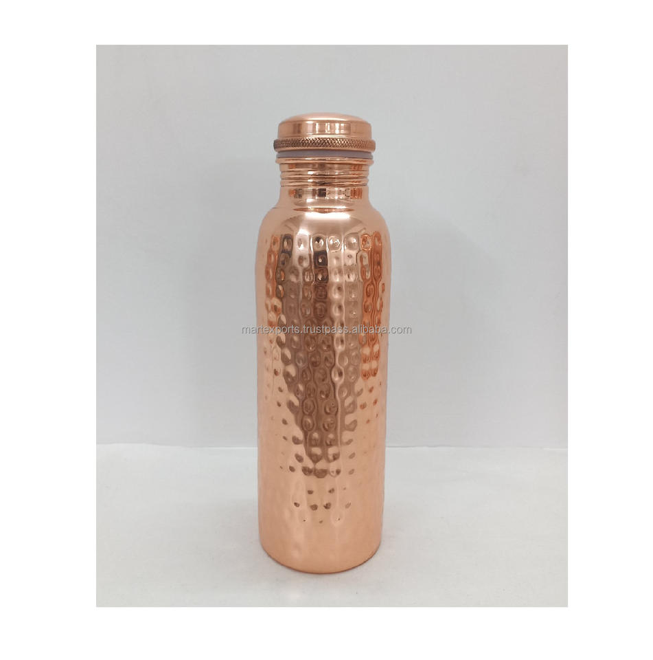 Bouteille d'eau en cuivre massif pur pour une consommation quotidienne, avec bouchon anti-fuite favorisant l'hydratation, la digestion et un mode de vie sain.