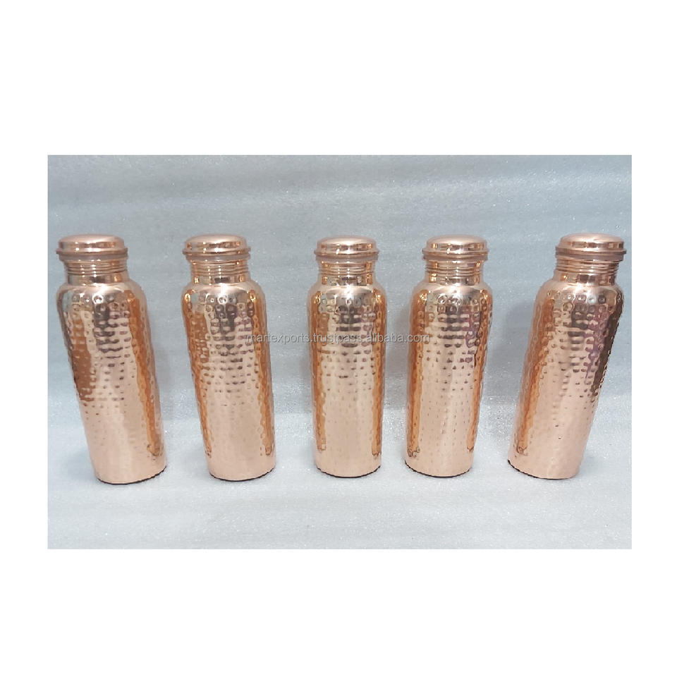 Bouteille d'eau en cuivre massif pur avec bouchon anti-fuite pour une consommation quotidienne favorisant l'hydratation naturelle, la digestion et le bien-être