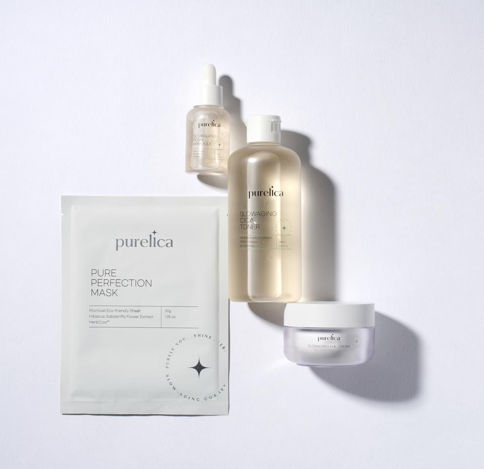 Purelica Ralentissement PDRN Coffret cadeau 4 étapes Toner Ampoule Crème Apaiser Hydrater Soulagement des rougeurs Raffermissant Éclaircissant Vegan