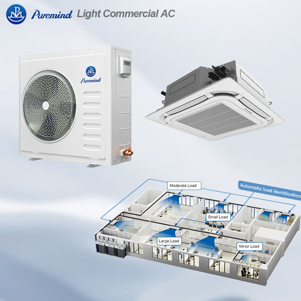 Climatiseur cassette Puremind à vitesse fixe 18K-60K BTU R410A, refroidissement uniquement, avec télécommande, pour restaurants et cafés