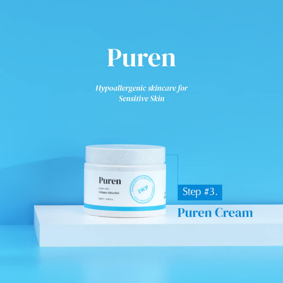 Crème hydratante intensive Puren pour la peau pendant la grossesse, acide hyaluronique, collagène, bakuchiol 78,5, hydratation cliniquement améliorée, 100 ml