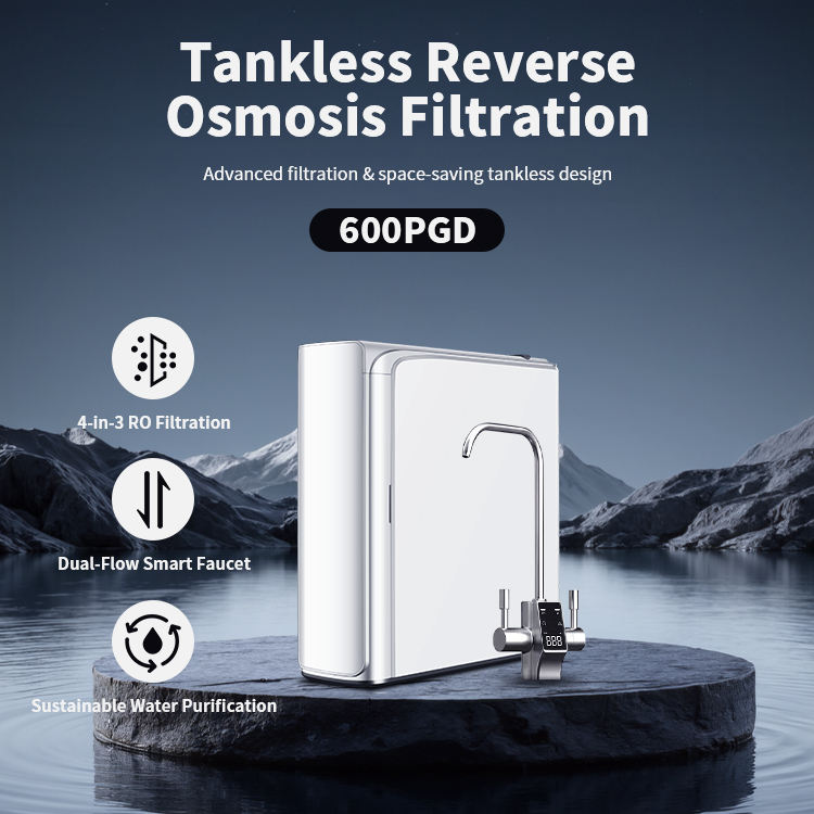 Système d'osmose inverse Purey, filtre à eau double RO, 600 GPD, débit rapide, sans réservoir, sous évier, avec robinet LED intelligent