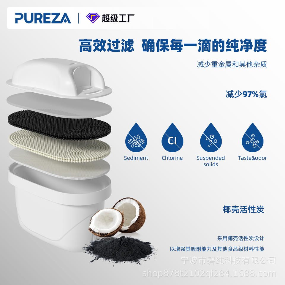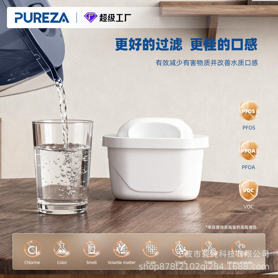 Carafe filtrante Pureza 2,5 L grande capacité avec filtre à charbon actif, fonctionnement manuel, eau au goût exceptionnel