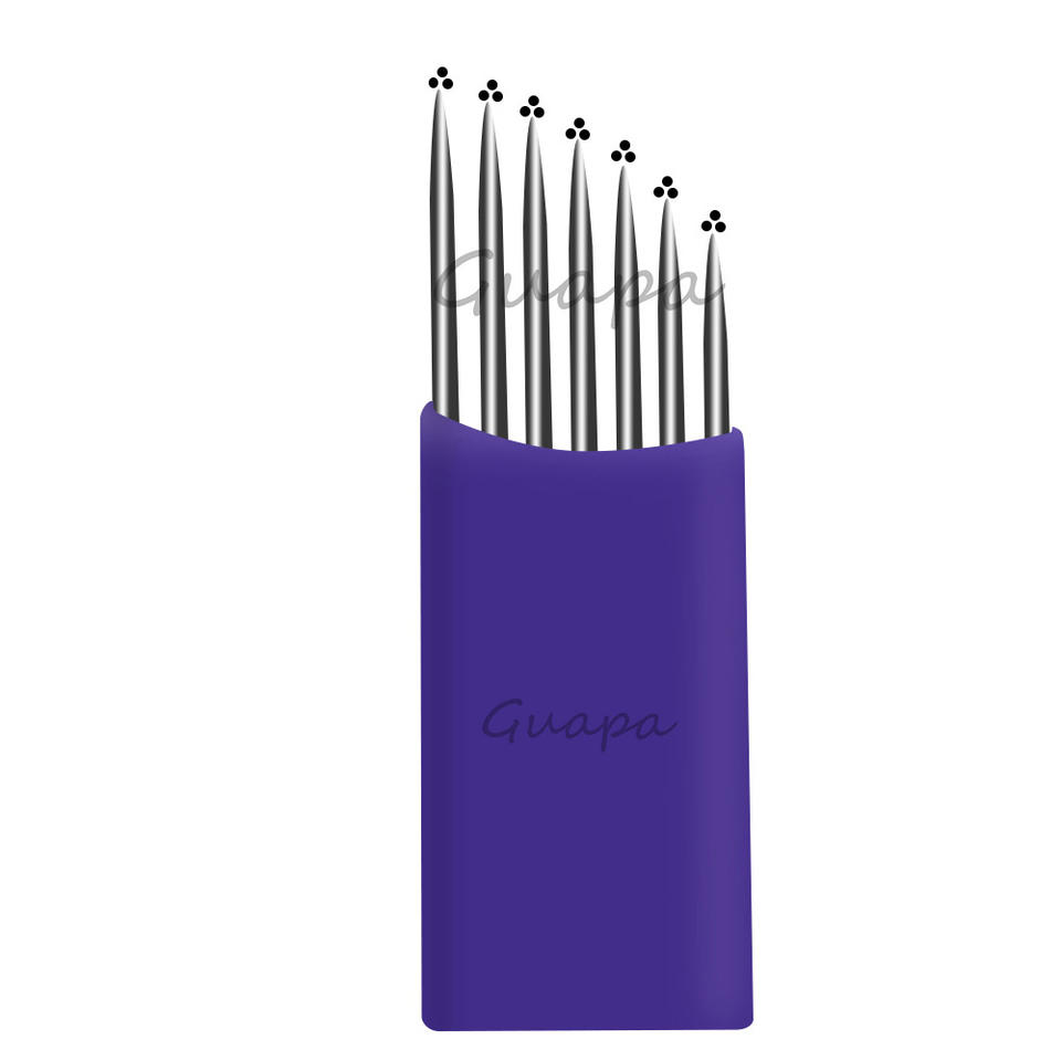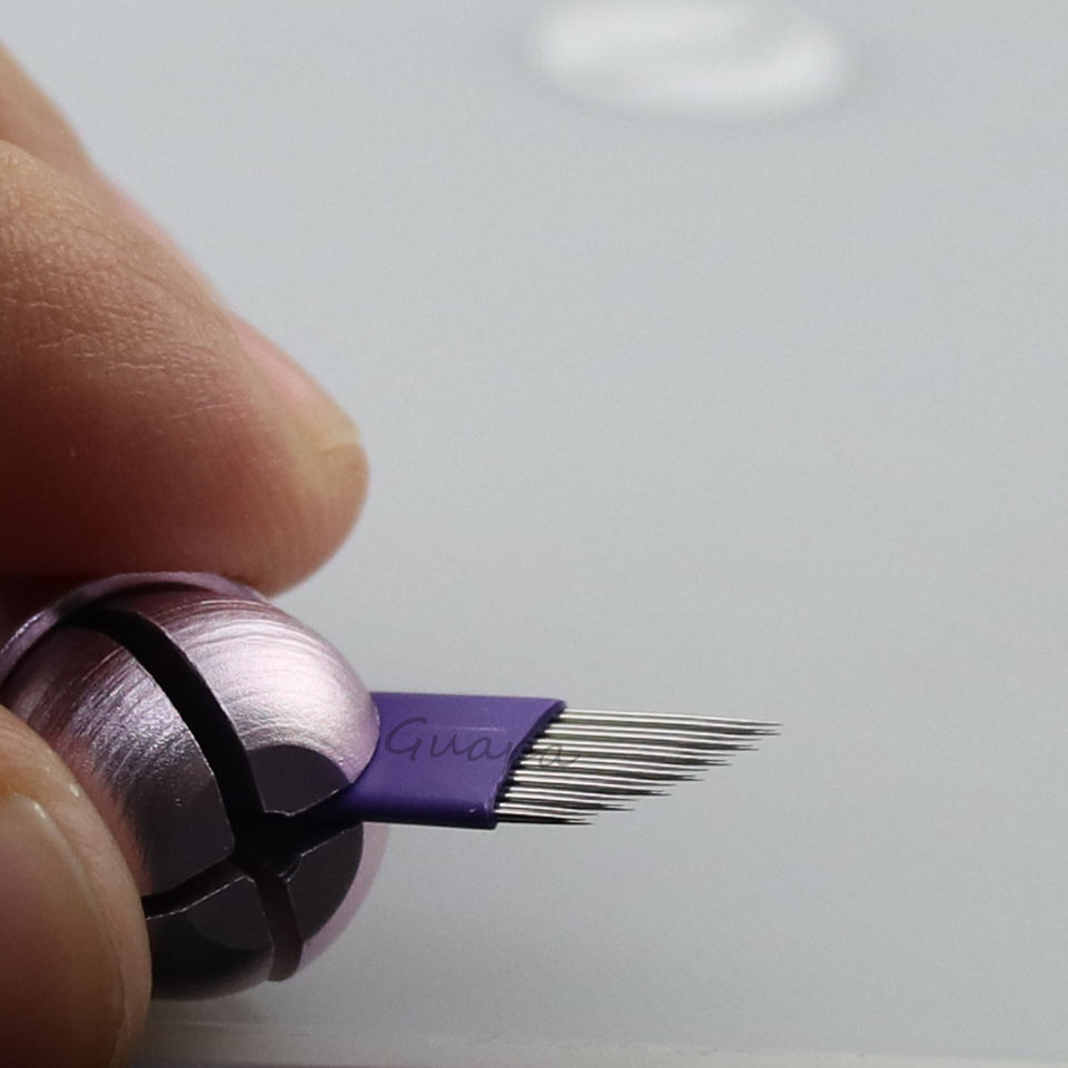 Aiguilles de Microblading violettes à 3 rangées 21 broches 7 bouquet 3 aiguilles de tatouage de sourcil Magnum Shader rond lame de sourcils Ombre