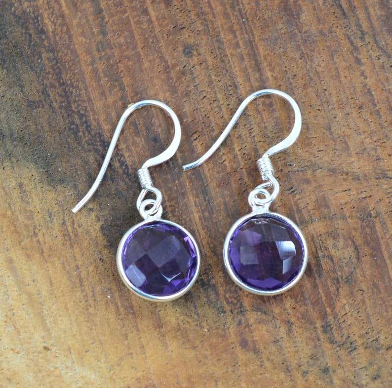 Purple Amethyst 925 Sterling Silver Cut Gemstone 1 Pair Hook Earrings Handmade Jewelry Elegant Gift For Women