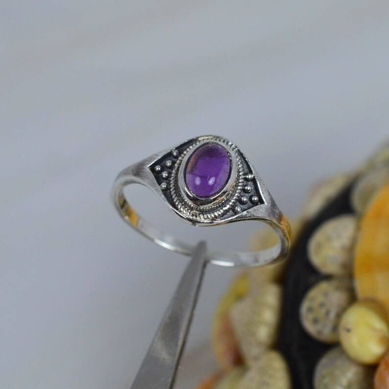 Purple Amethyst Ring 925 Sterling Silver Handmade Jewelry February Birthstone Oval Gemstone Ring for Women