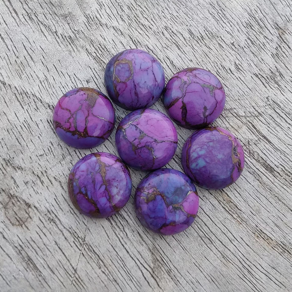 Cabochon rond plat en cuivre violet et turquoise, pierre précieuse polie et calibrée, pierre en vrac pour la fabrication de bijoux, toutes tailles disponibles