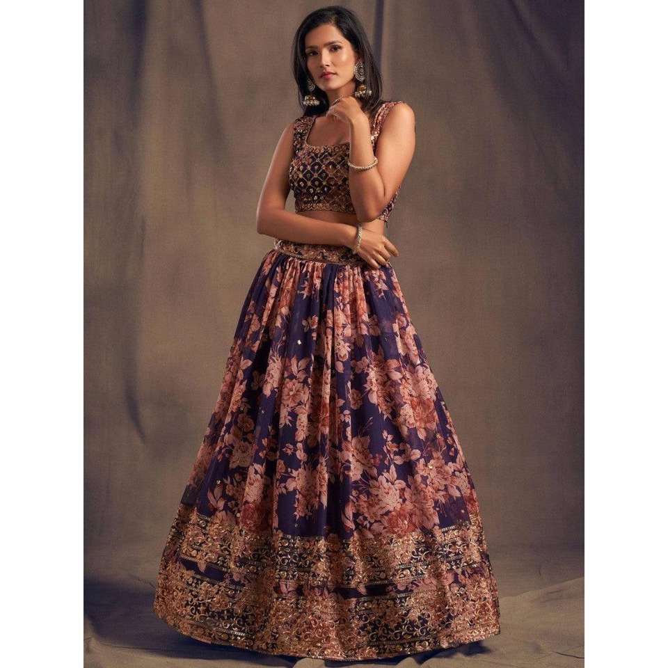 Purple Floral Printed Women's Organza Lehenga Choli Festive Women's Sets