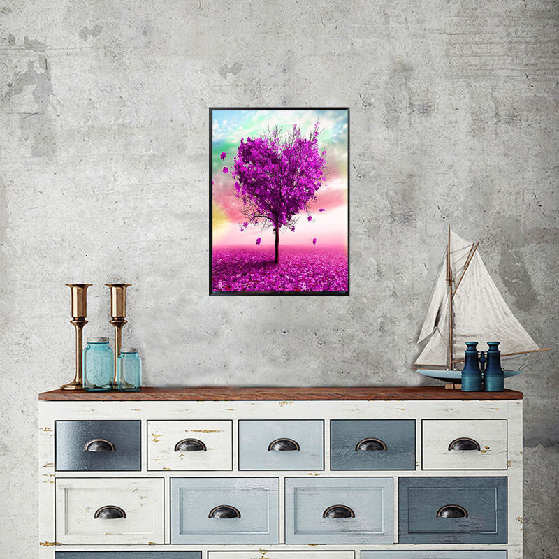 Violet en forme de coeur arbre 5D diamant peinture bricolage plein carré/rond perles strass broderie point de croix Kits Arts décor à la maison