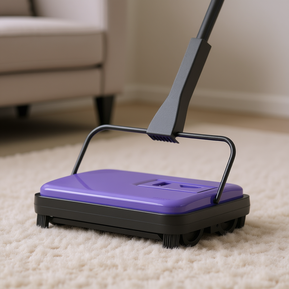 Balai manuel pour tapis violet, largeur de nettoyage de 6,7 pouces, bac à poussière de 300 ml, utilisation à domicile ou au bureau, nettoyeur de poils d'animaux et de poussière