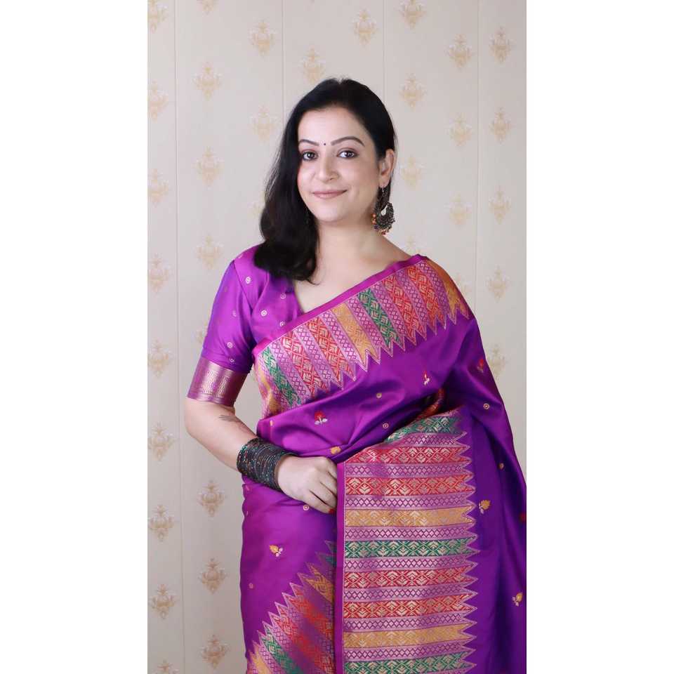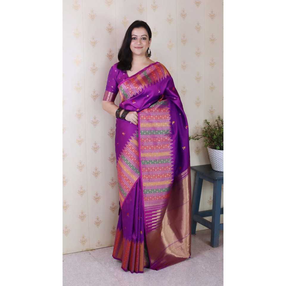 Purple Soft Silk Meenakari Zari Woven Saree with Temple Border Ethnic Scarves & Shawls