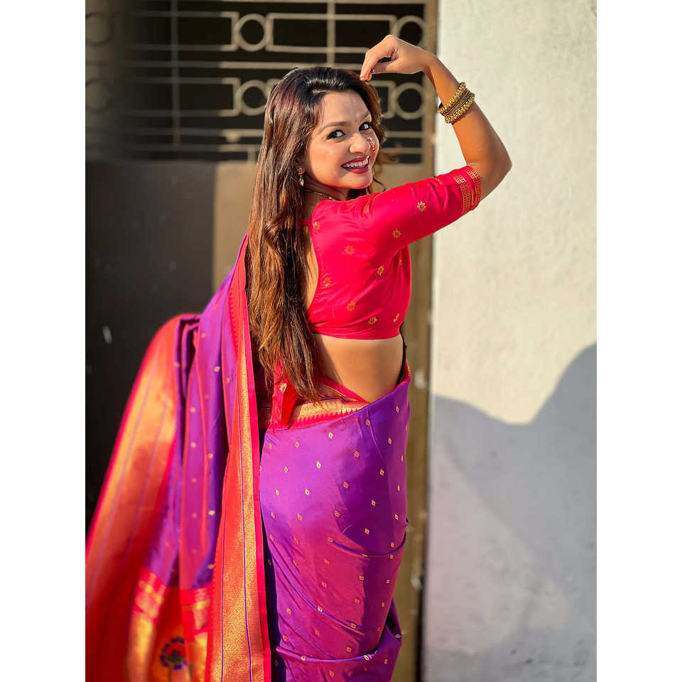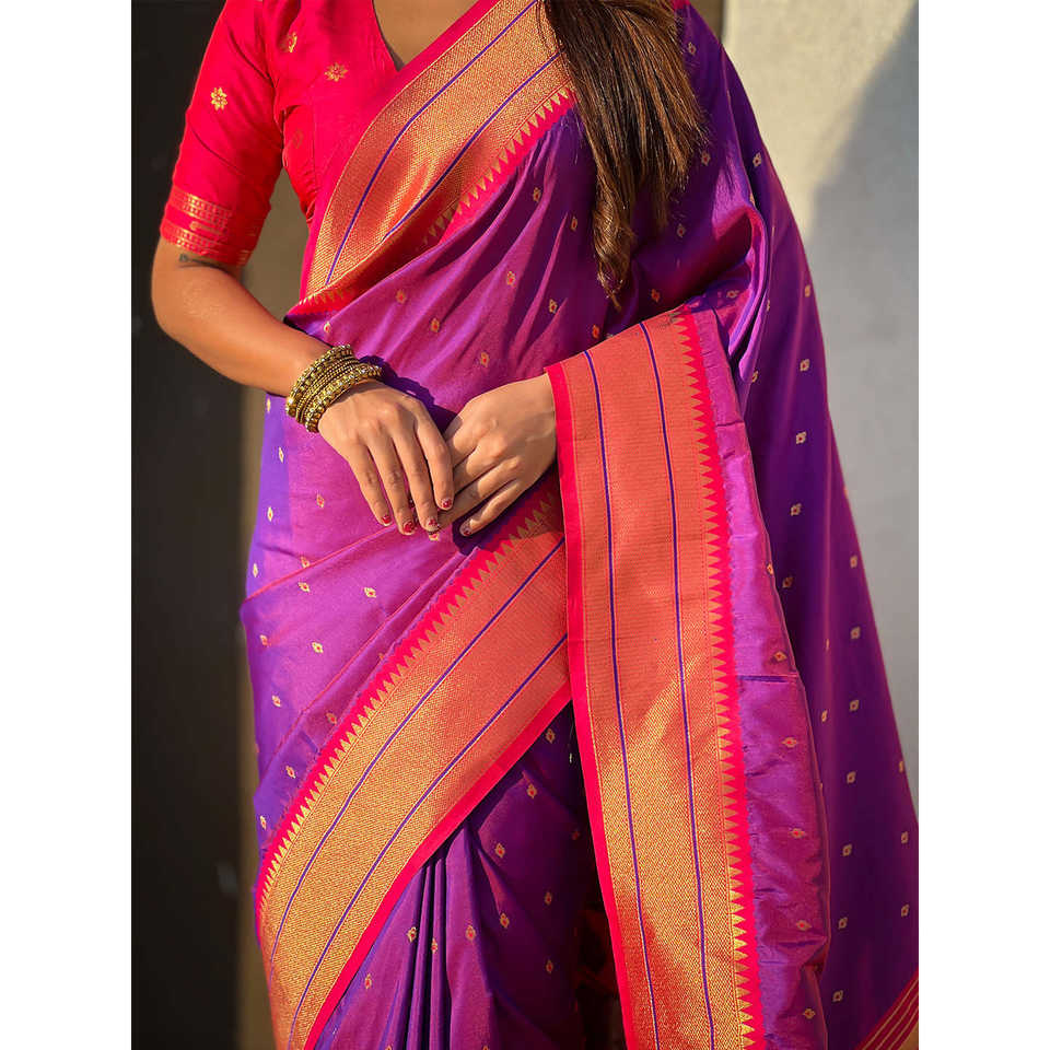 Purple Soft Silk Paithani Zari Woven Saree Elegant Evening Dresses